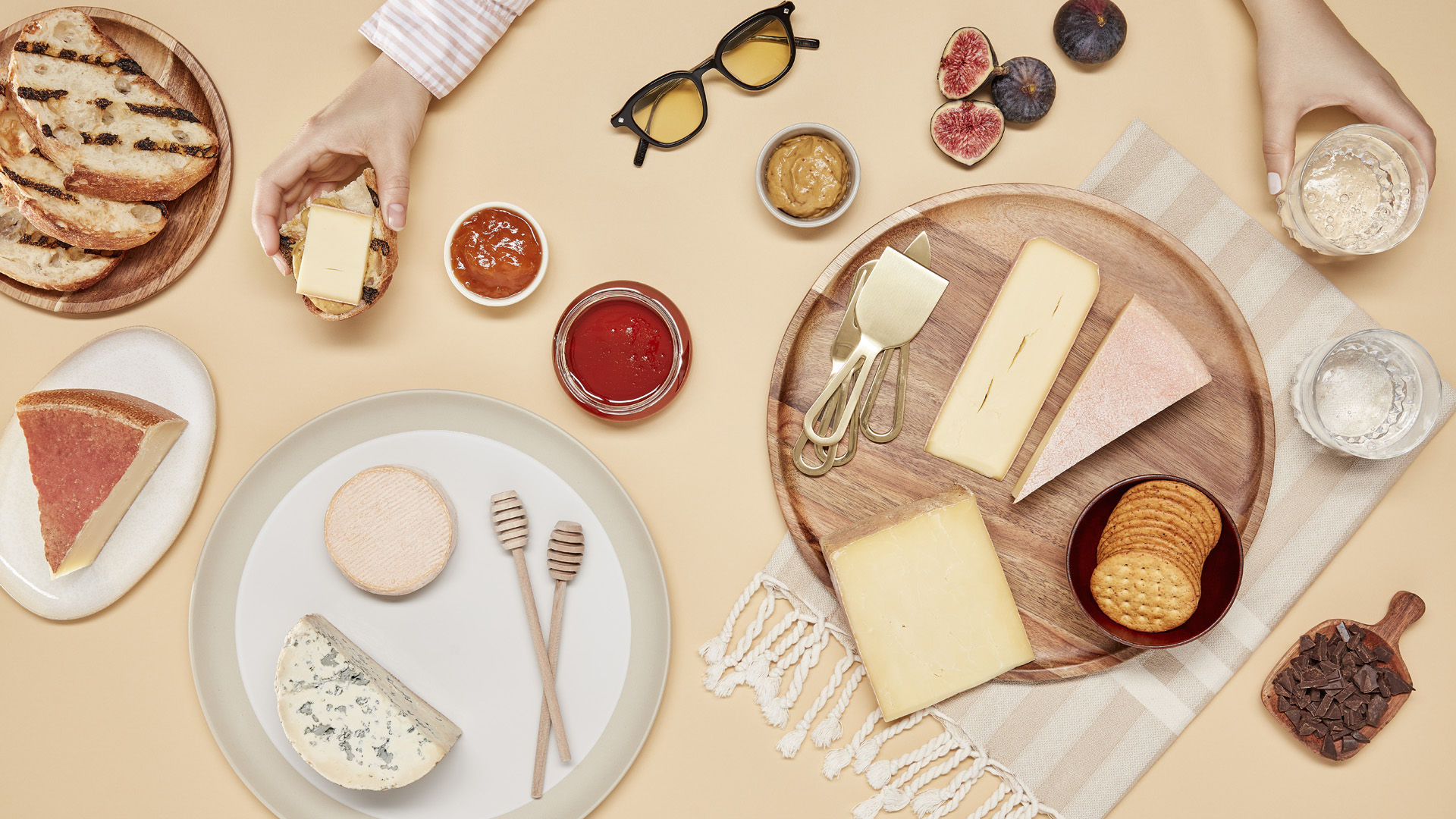 - Pour faciliter le service, disposer les fromages durs à couper sur le bord du plateau et les fromages plus friables au centre.