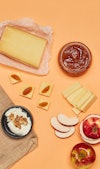 Les cidres et la pomme, que l’on aime sucrée, nature, en croustilles ou en beurre, accompagnent parfaitement ce plateau de fromages tout en couleur, en textures et en arômes. Avec les fromages frais, nous vous conseillons des bulles fraîches et acides ; avec les pâtes fermes, un cidre tranquille ; et avec le bleu, d’ouvrir le cidre de glace. Et n’oubliez pas d’acheter un cidre sans alcool pour que les enfants puissent aussi prendre part aux festivités!