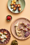 Piquer des morceaux de charcuterie et de fromages à pâte ferme ou semi-ferme sur une autre brochette.