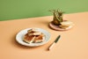 Ajouter deux morceaux de grilled cheese aux trois fromages et à l’estragon, coupés en triangles.