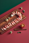 Laisser refroidir puis disposer chaque élément en forme de canne de Noël, en alternant tomates et tranches de mozzarella.