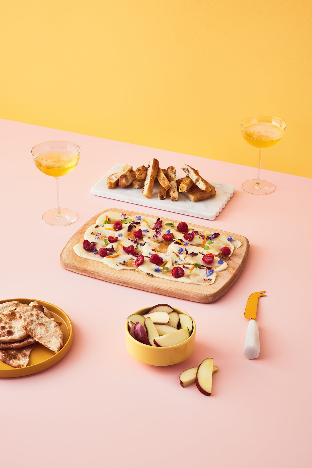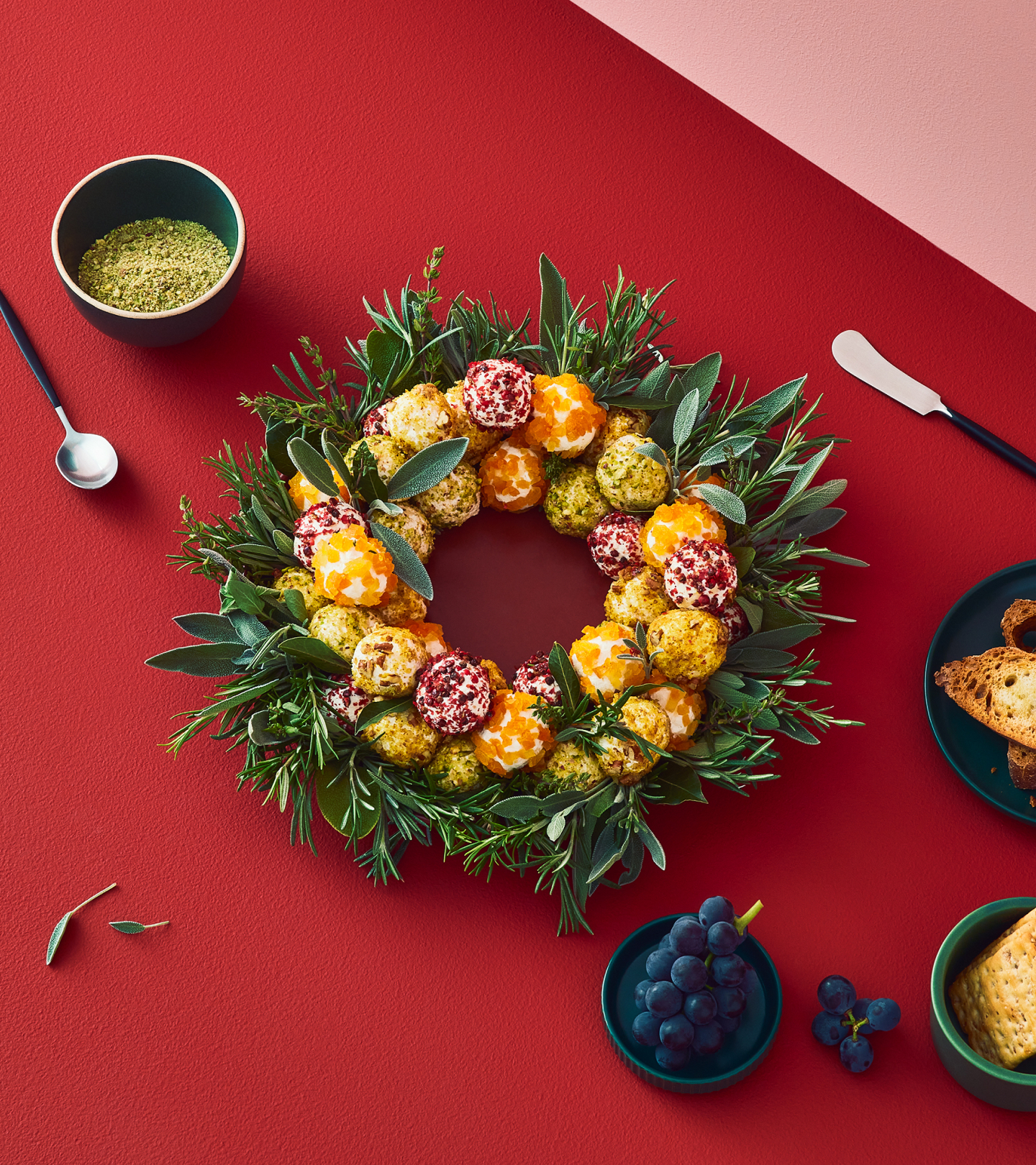 Un centre de table à adapter selon ses préférences, l’effet visuel voulu ou tout simplement ce qui est disponible à la maison, sympa non? À l’aide de feuillage et de boules à rouler dans des garnitures variées, vous pourrez créer une couronne aussi originale que conviviale. L’agencement proposé, qui peut être réalisé avec diverses combinaisons de fromages, pourra vous permettre d’explorer ou de proposer différents profils de saveurs. Et pour ajouter au côté festif, accompagnez le tout d’un cidre rosé pétillant ou d’un vin blanc fruité.