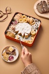 Placer le flocon entier au centre de la boîte et disposer les accompagnements tout autour.