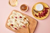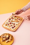 Tartiner une planche de bois à l’aide d’une spatule et la garnir d’ingrédients savoureux.