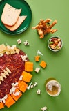 - Autour de la pièce centrale, déposer des assortiments de divers fromages à pâte ferme et semi-ferme.