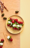 - Assembler des mini-brochettes de type dégustation en alternant les fromages et un fruit frais* ou séché.