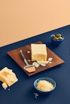 Grand classique de l’histoire des fromages, le parmesan est fabriqué selon un procédé très précis. Au Québec, son affinage doit minimalement durer 10 mois – une période pendant laquelle sa croûte sèche et durcit, et où ses arômes soutenus et piquants se développent. D’une couleur jaune ocre pâle, sa pâte est dure, granuleuse et friable. Souvent dégusté râpé, il est tout aussi délicieux en morceaux et saura apporter une touche d’élégance salée à vos plateaux. On recommande de râper le parmesan qu’au fur et à mesure des besoins, afin de préserver sa richesse.