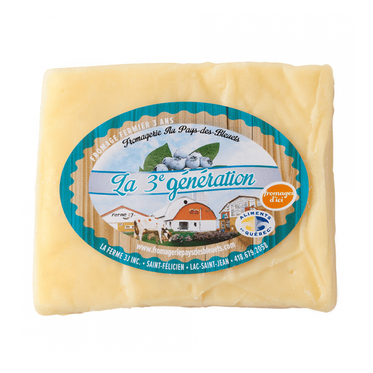 Affiné pas moins de 3 ans, ce fromage à pâte ferme est fait de lait pasteurisé provenant du troupeau de vaches Ayrshire de la Ferme laitière 3J. Sa texture est tendre et fondante. Au nez, il offre un parfum lactique et fruité. En bouche, un délicieux goût de lait légèrement acidulé (crème sûre) dévoile aussi des notes de noix quelque peu sucrées.