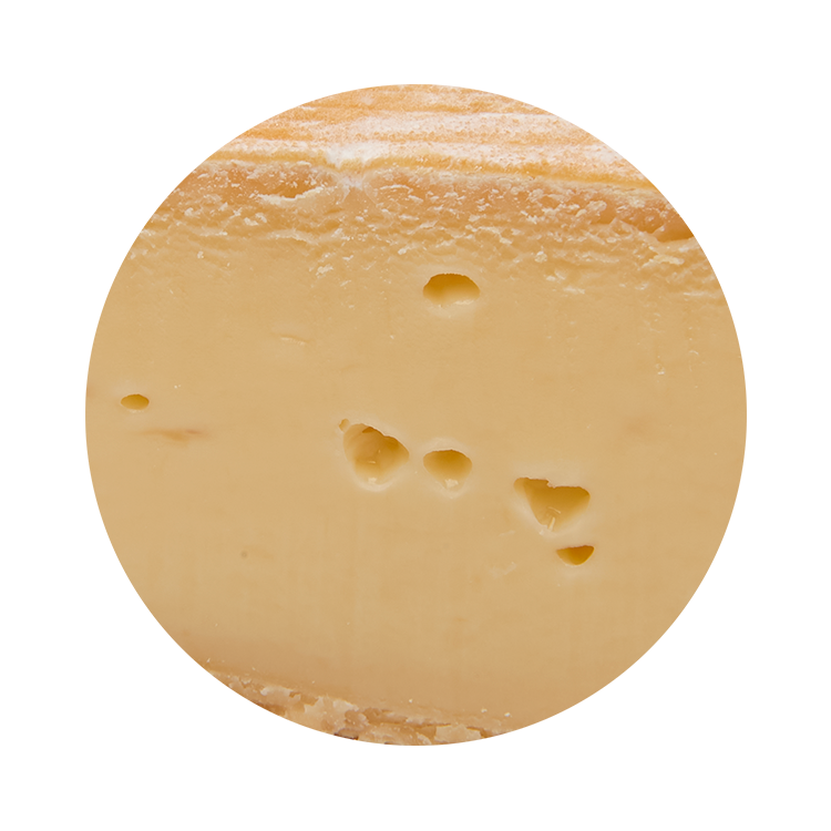 Fait de lait A2 de vache Jersey, ce fromage de type tomme souple est couvert d’une mince croûte jaune safran sur laquelle se développe un voilage blanc. Sa pâte parsemée de petites ouvertures est douce et onctueuse. Son goût de crème est rehaussé par l’arôme animal de sa croûte.