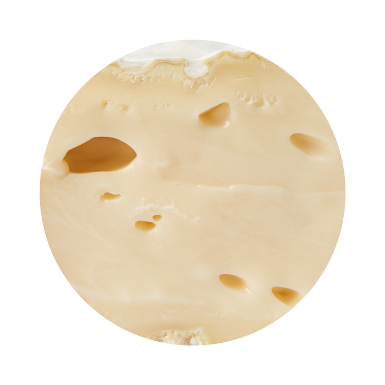 Sanglé de bois, ce fromage doux à pâte molle et croûte mixte lavée présente des arômes végétaux délicats et légèrement boisés.