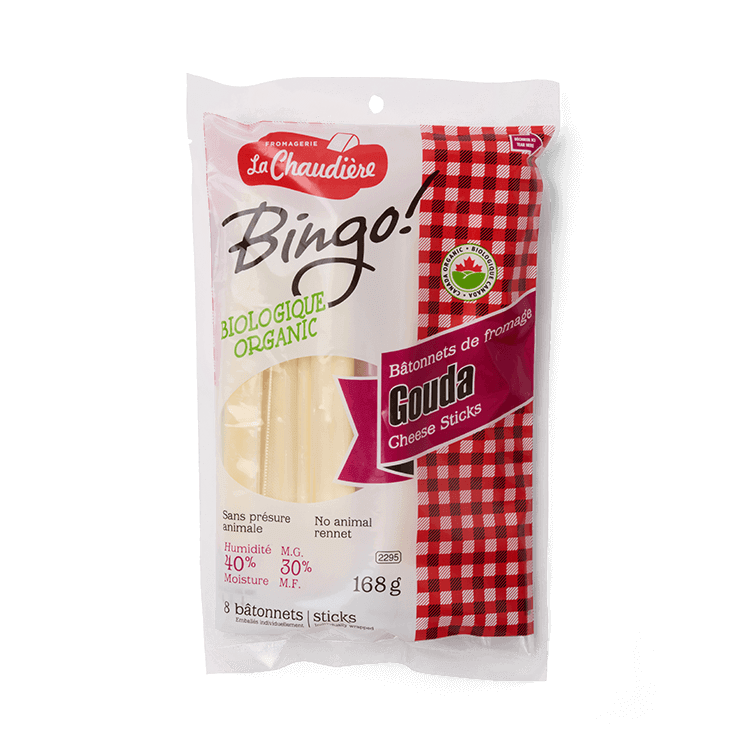 Ce fromage sans lactose à pâte ferme sans croûte est fait de lait biologique pasteurisé et fabriqué à l’aide d’enzymes microbiennes de nature végétale, donc sans présure animale. La pâte beige clair de ce gouda est homogène et présente un arôme et un goût de crème, d’amande et de noisette. Il est offert en bloc de différents formats et en bâtonnets.