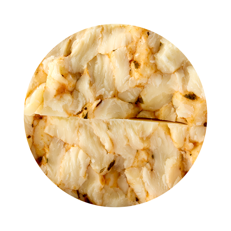 Fait de lait pasteurisé, ce fromage aromatisé aux tomates séchées et basilic possède une pâte ferme sans croûte à la surface brillante et lisse.