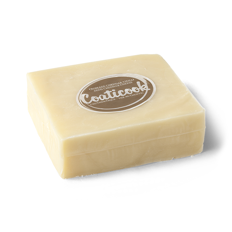 Ce fromage à pâte ferme sans croûte est fabriqué à partir de lait thermisé de première qualité, sans substances laitières modifiées. Le cheddar vieilli possède une pâte plus ferme que le cheddar doux. Bien que le goût puisse varier selon le nombre de mois d’affinage, il a les caractéristiques des fromages mi-forts.