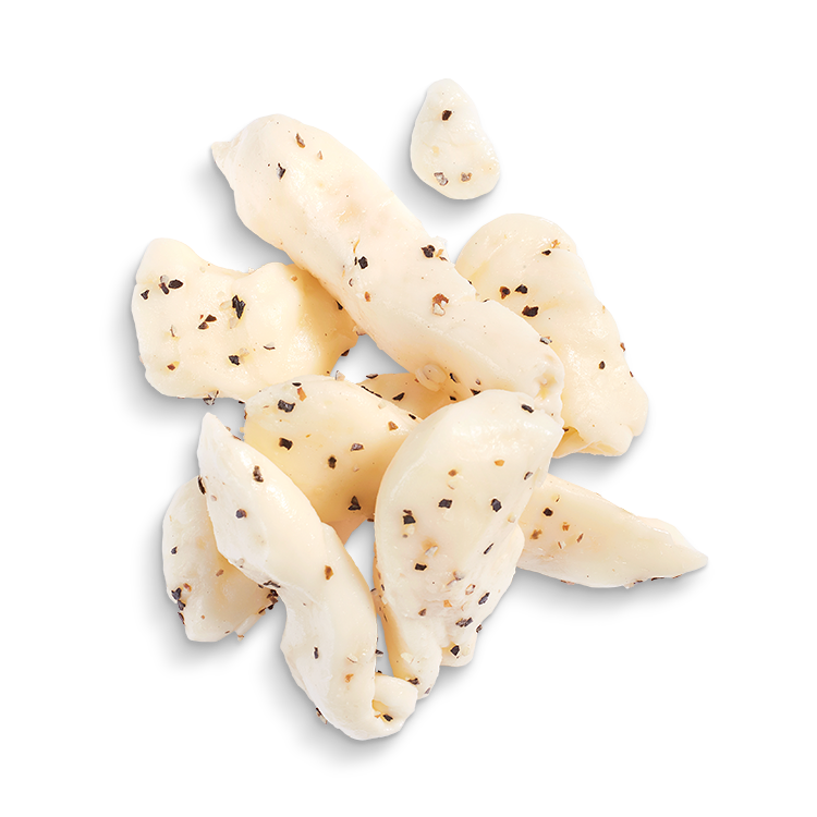 Ce fromage à pâte ferme sans croûte est fait de lait pasteurisé pur à 100 %, sans ajout de substances laitières modifiées.