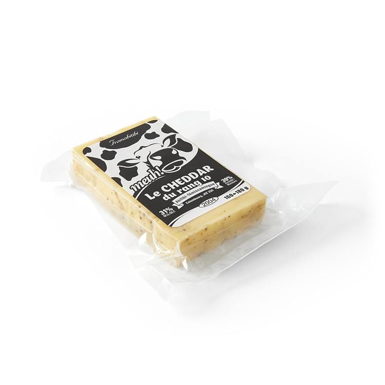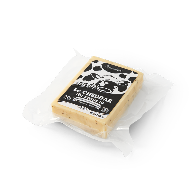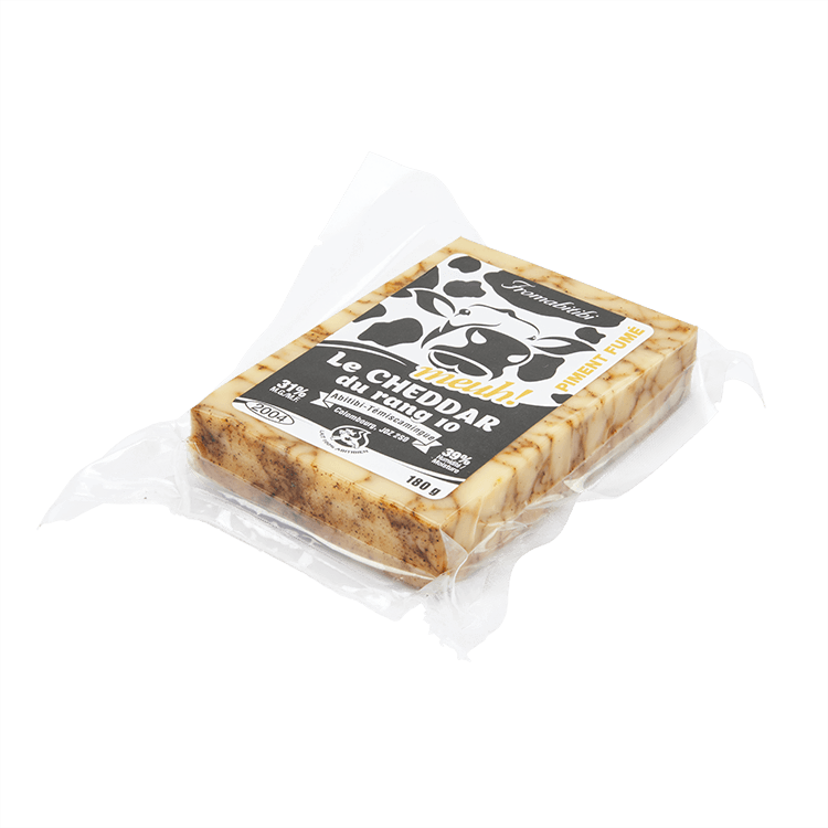 Fait de lait pasteurisé, le fromage Cheddar du Rang 10 aromatisé au Piment Fumé est idéal pour rehausser vos repas ou pour être dégusté en collation.