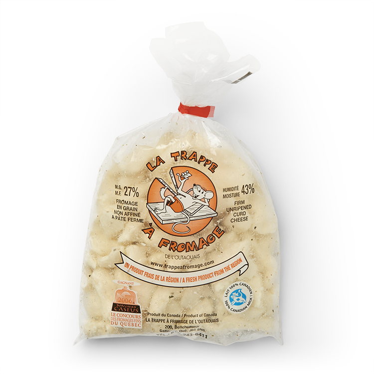 Plus de 90 ans d’expertise sont derrière le perfectionnement de leur célèbre fromage en grains frais du jour, un incontestable fleuron régional. Il possède une pâte légèrement salée qui chante « Squick squick » sous la dent, une texture distinctive recherchée par les gourmands. Vainqueur d’un CASEUS d’Or en 2006 faisant alors de lui le meilleur fromage en grains frais au Québec.