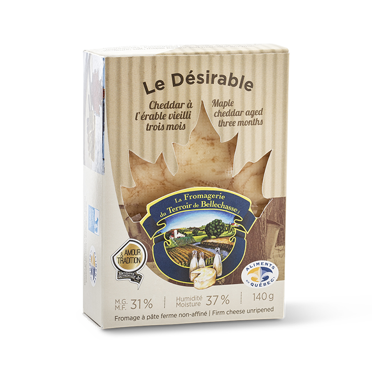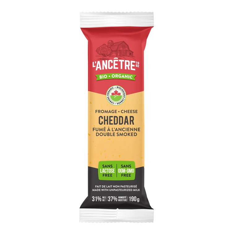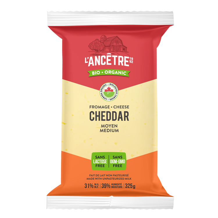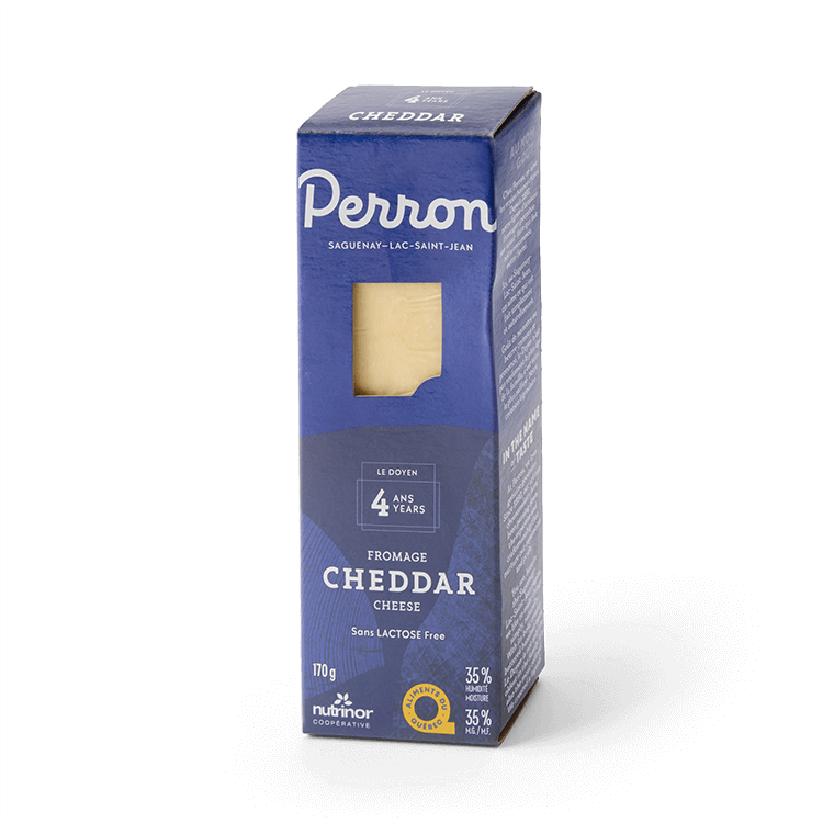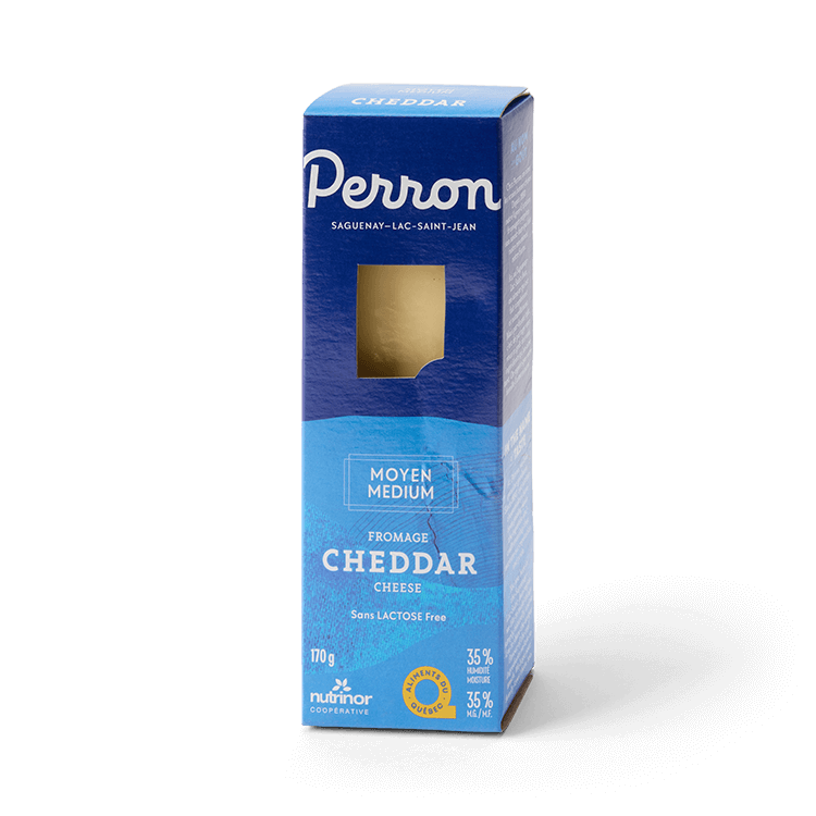 Cheddar fait de lait pur à 100 % pasteurisé, il possède une texture lisse et tendre ainsi qu’un léger goût de beurre.