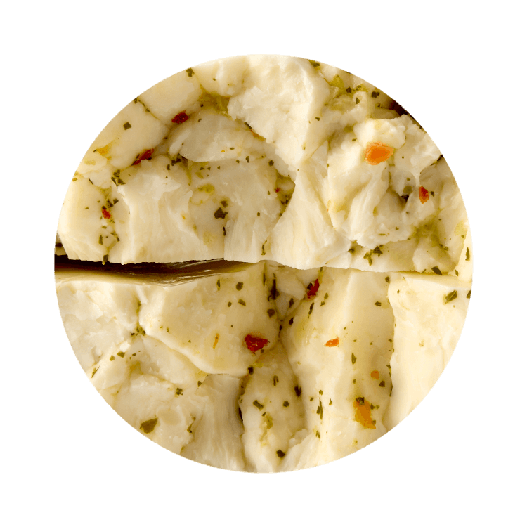Ce cheddar au goût de noisette et de beurre salé aromatisé aux fines herbes est un fromage à pâte ferme sans croûte qui est fait du lait pasteurisé provenant uniquement des fermes laitières situées à proximité de la fromagerie. Cela permet au fromage de conserver les qualités aromatiques supérieures du lait, ainsi que les saveurs subtiles propres au terroir de Saint-Jean-Port-Joli.