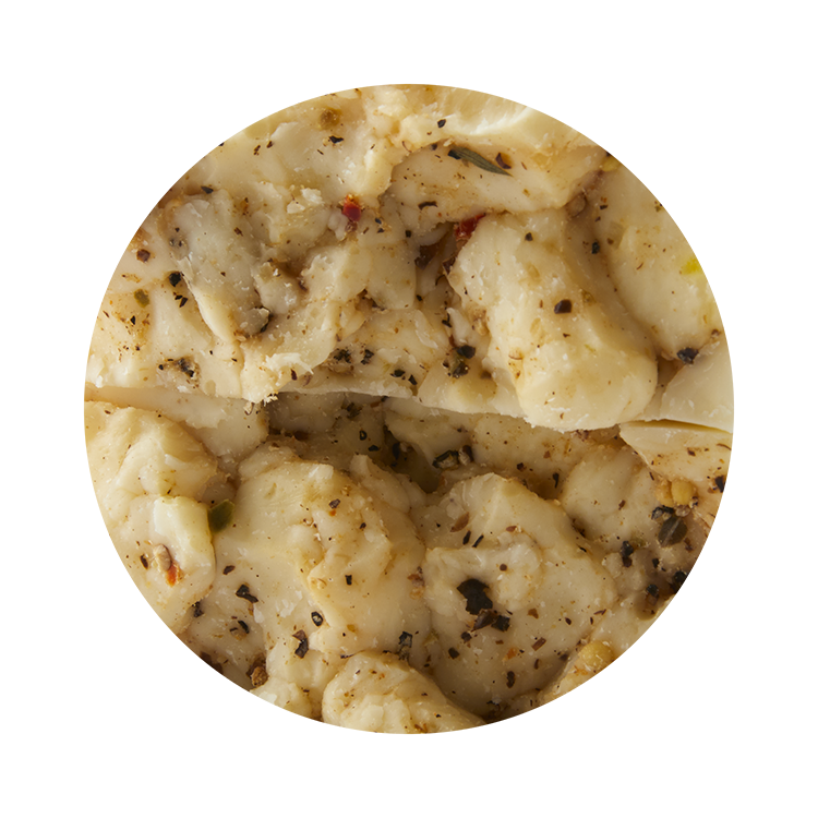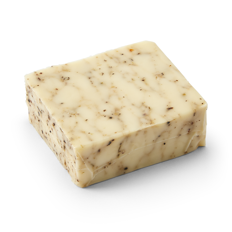 Ce cheddar est un fromage non affiné à pâte ferme ayant une texture lisse et cireuse. Sa pâte a une couleur allant du blanc cassé à l'ivoire et est parsemée d'épices à steak et de poivre noir. Il a un goût doux d'épices à steak et de poivre.