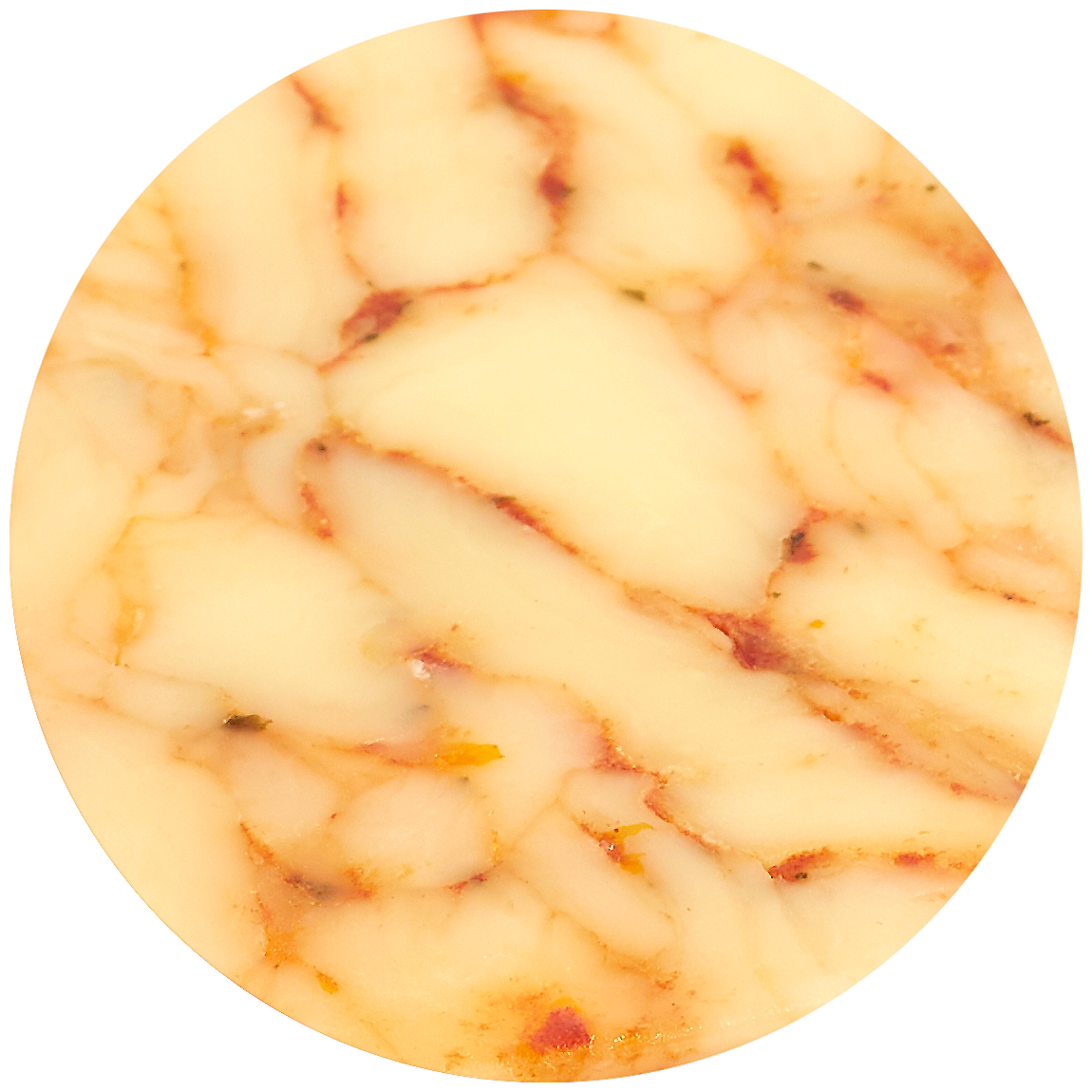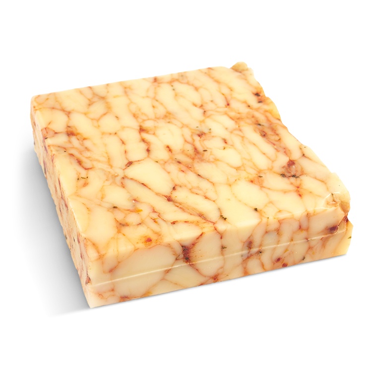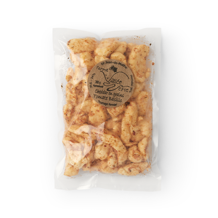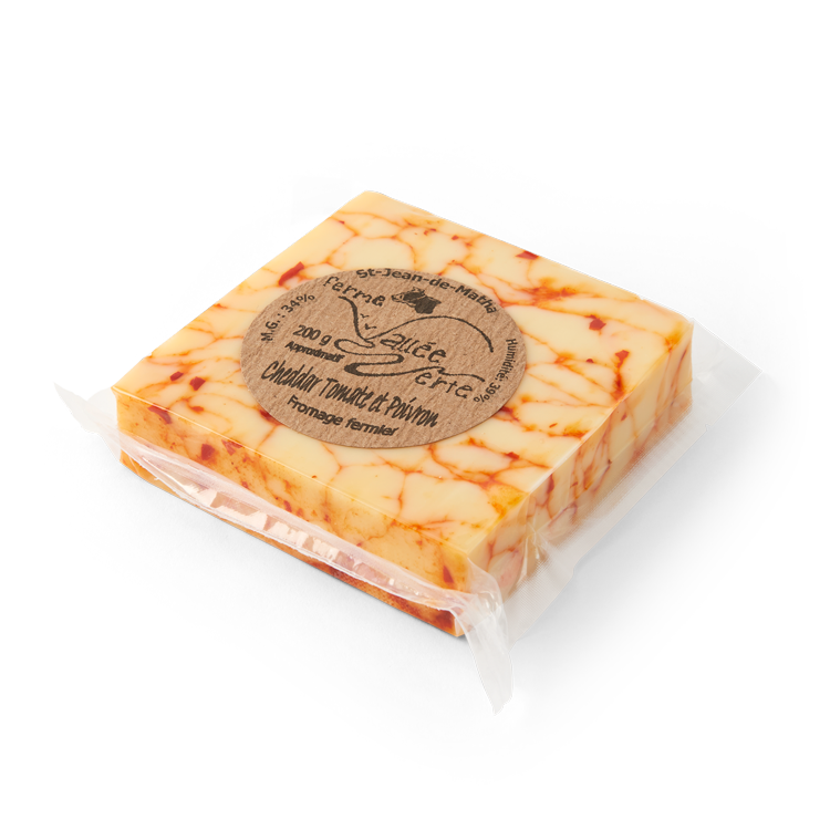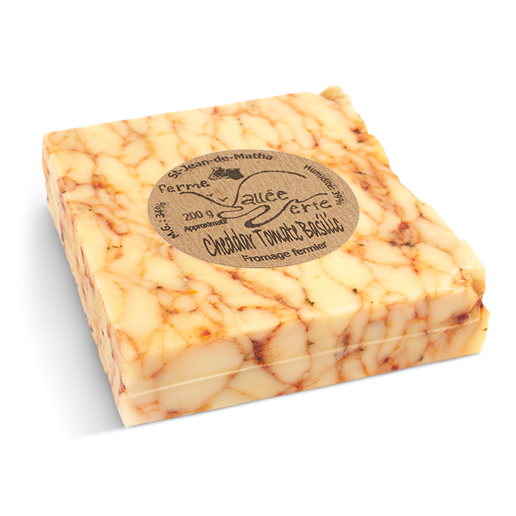 Ce fromage à pâte ferme sans croûte est fabriqué avec le lait pasteurisé à basse température provenant directement du troupeau de vaches de la ferme familiale. Aromatisé à la tomate et au basilic, ce cheddar possède une texture lisse, tendre et un peu élastique. Fabriqué sans ajout de colorant ni d’agent de conservation, sa fraîcheur est de qualité inégalée.