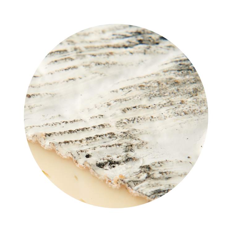 Affiné 60 jours, ce fromage doux aux arômes plutôt lactiques est fait de lait thermisé. Enrobé d’une fine couche de cendre végétale et recouvert d’une croûte blanche fleurie, il possède une pâte semi-ferme.