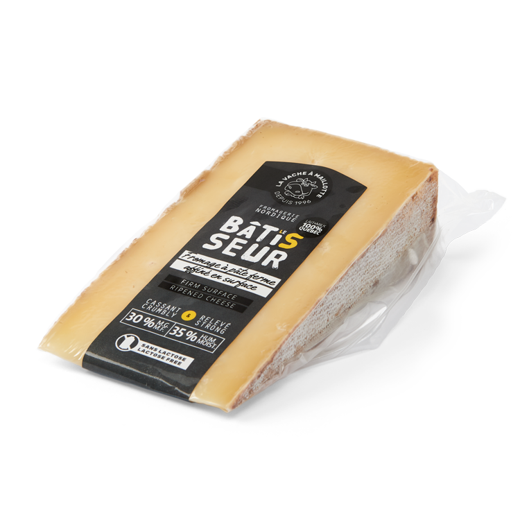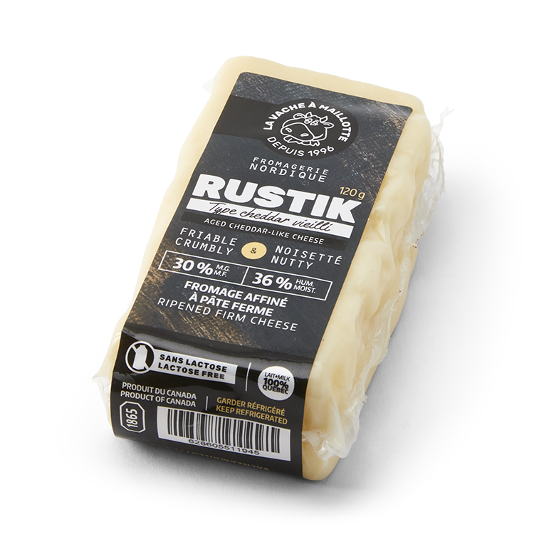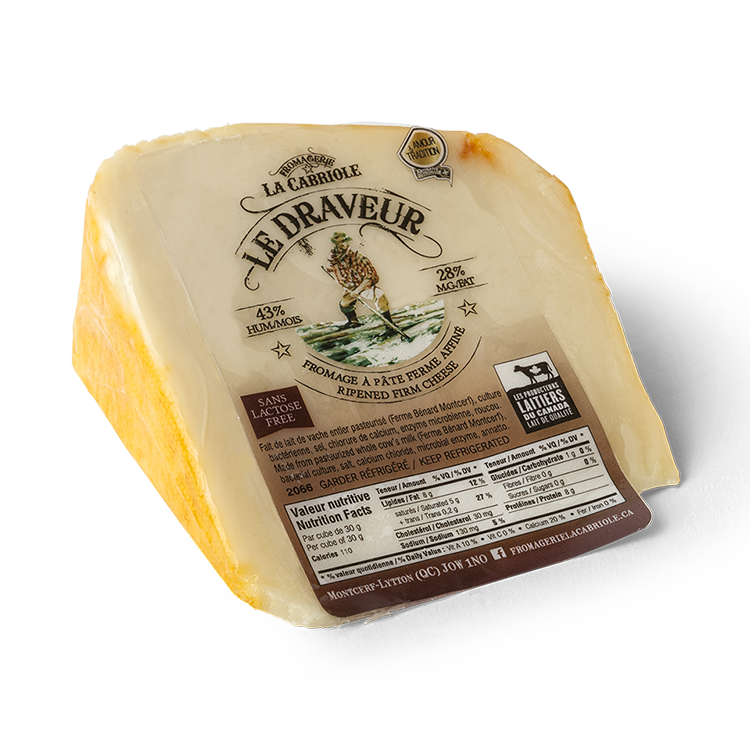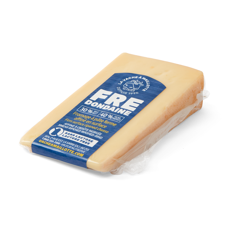 Ce fromage à pâte ferme affiné dans la masse est fait de lait pasteurisé et est sans lactose.