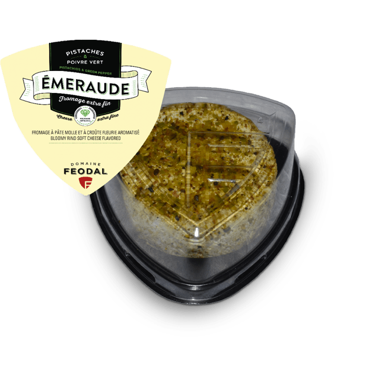 Ce fromage à pâte molle à croûte fleurie est fait de lait pasteurisé. Il est affiné 30 jours et recouvert de pistaches et de poivre vert, ce qui lui confère un goût exquis. Il se peut que la croûte redevienne blanche; c'est un processus normal d'affinage. Vous aurez toujours le même bon goût du fromage sous la croûte.