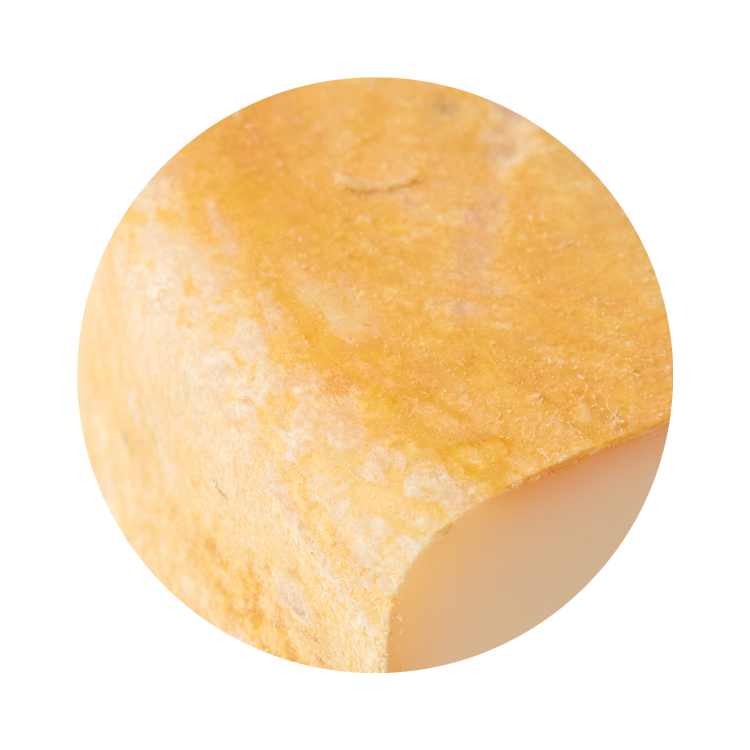 Affiné au moins 60 jours, ce fromage à pâte ferme à croûte lavée en début d’affinage est fait du lait pasteurisé provenant d’un unique troupeau de vaches d’une ferme voisine de la fromagerie. Sous sa croûte orangée et rustique, au léger duvet blanc, se présente une pâte à la texture crémeuse et fondante en bouche. Son goût est agréablement doux aux délicats parfums de lait frais et de fleurs des champs. Au palais, il se métamorphose en un délectable goût de noisette.