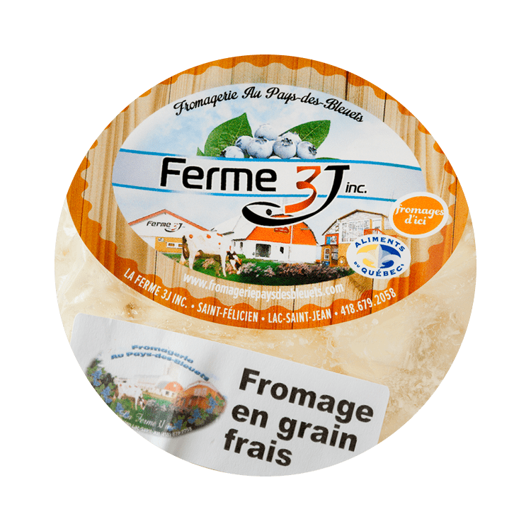 Offert en grains ou en blocs, ce fromage non affiné à pâte ferme sans croûte est fait de lait pasteurisé provenant des vaches Ayrshire de la Ferme 3J. Sa pâte présente une surface lisse et brillante et sa texture est souple et fondante en bouche. Son goût de lait frais légèrement acidulé aux notes de noisette ressemble sensiblement au populaire cheddar. Délicieux!