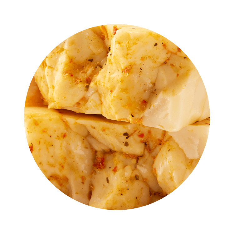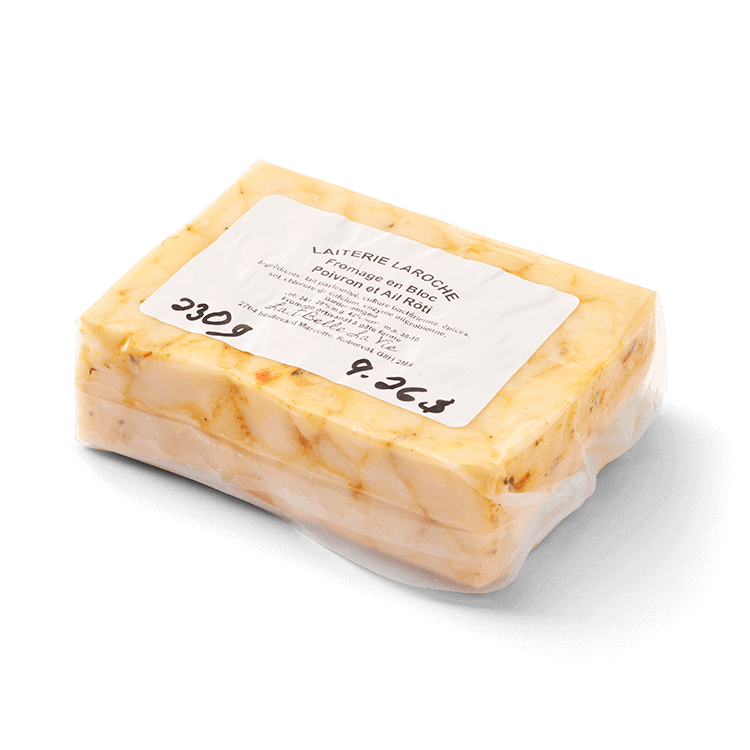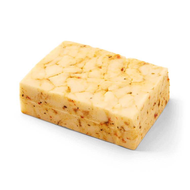 Fait avec le lait de la ferme à 100 % pur, ce fromage aromatisé au poivron et à l'ail rôti possède une texture souple et élastique. Il est finement préparé directement dans l’usine de transformation de la ferme familiale par l’artisan fromager.