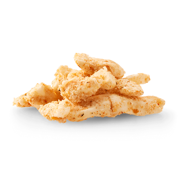 Enrobé de panure, le fromage en grains à l'ail et poivrons rôtis est prêt à être doré pour devenir croustillant sous la dent. Il suffit de 7 à 8 minutes dans le four à 350 degrés.