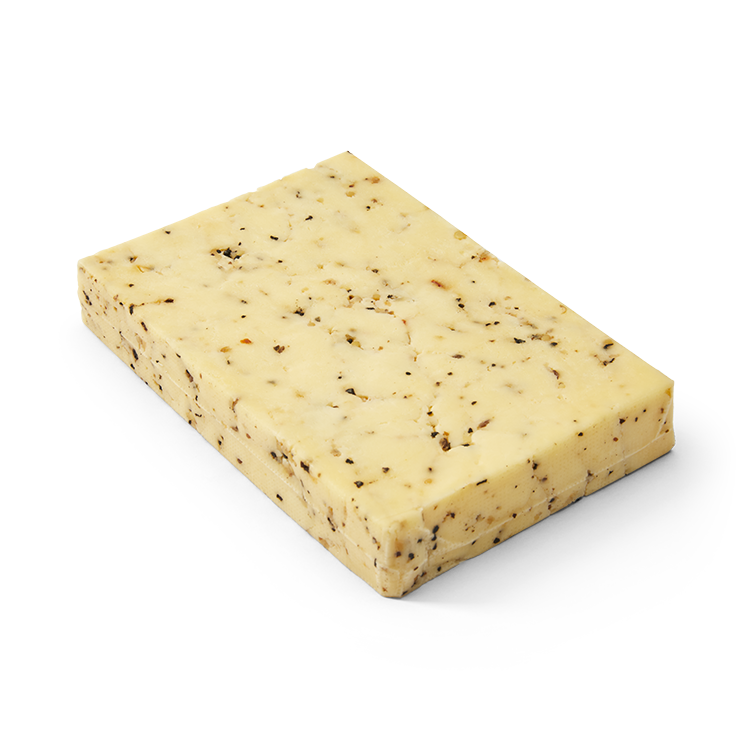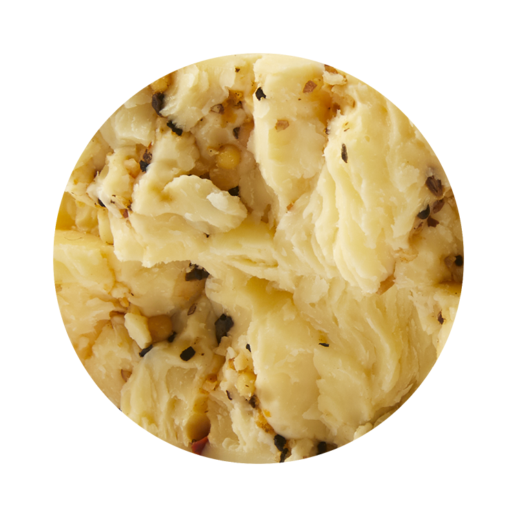 Fait du lait des vaches jerseys provenant de la ferme des propriétaires, ce fromage à une texture souple et élastique. Il possède une riche couleur dorée et un léger goût de beurre aromatisé aux épices à steak de Montréal.