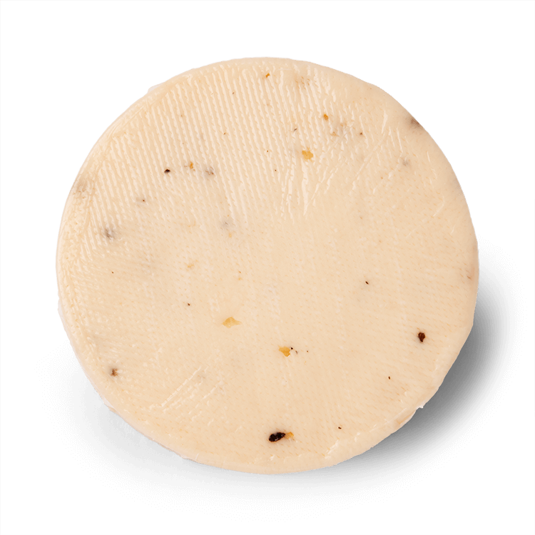 Fait de lait pasteurisé, ce fromage à pâte semi-ferme non affiné est aromatisé aux épices à steak.
