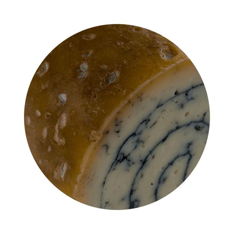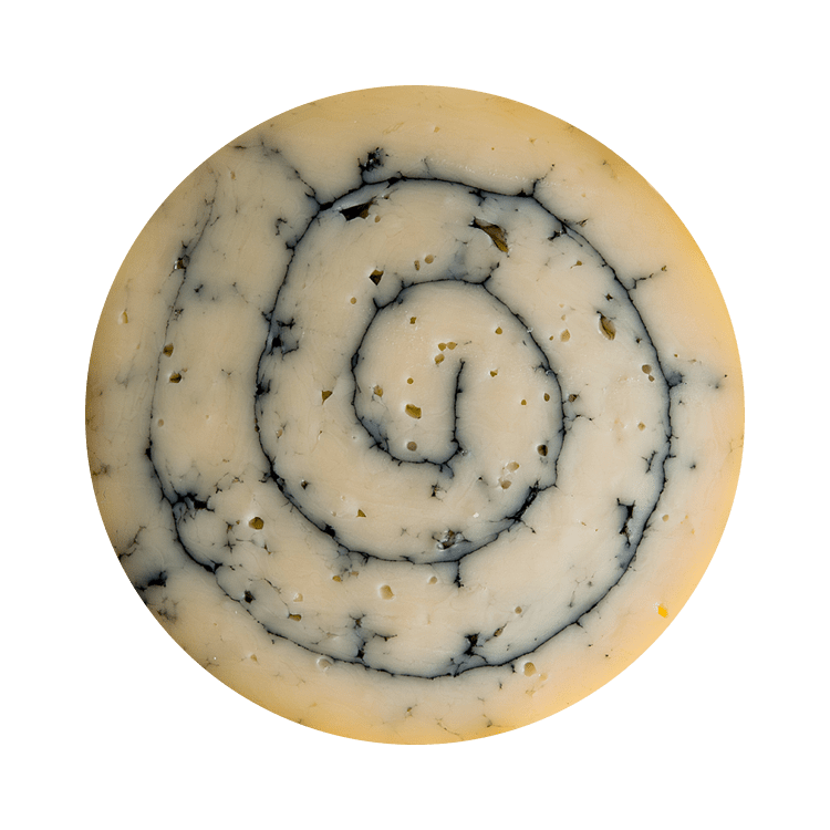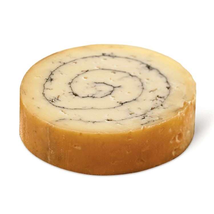 Affiné de 6 à 7 semaines, ce fromage artisanal sans lactose à pâte semi-ferme est fait de lait pasteurisé. Il est roulé à la main et sa couche de cendre végétale prend la forme d’une spirale, rappelant ainsi l’image d’un ballot de foin d’où son nom Le Ballot.