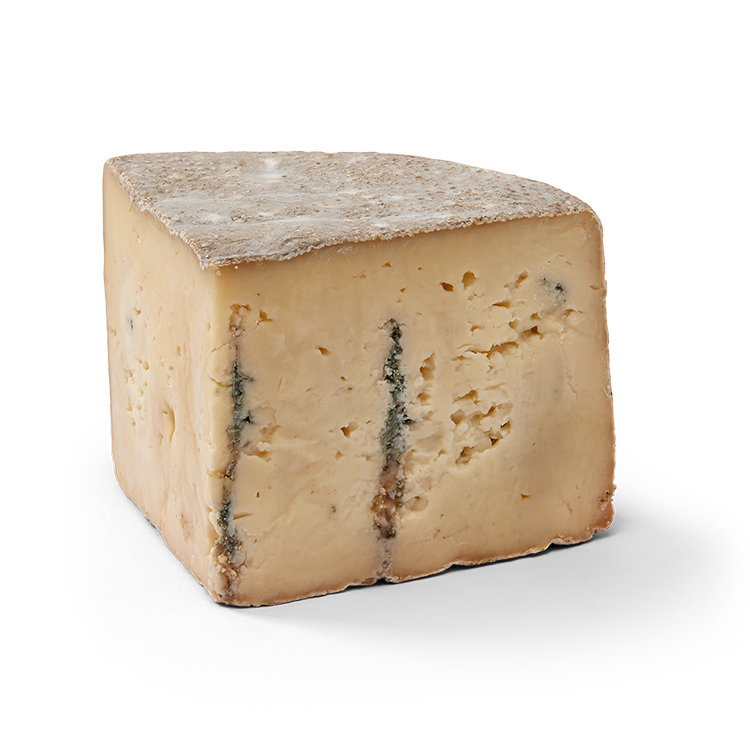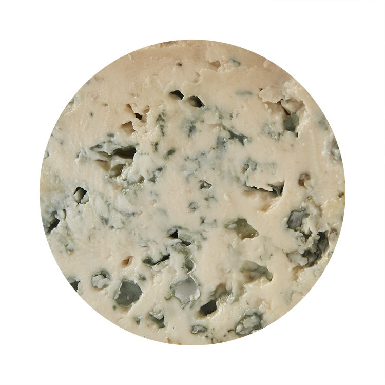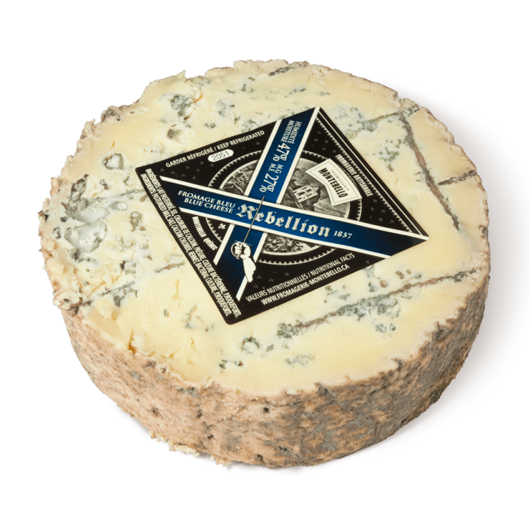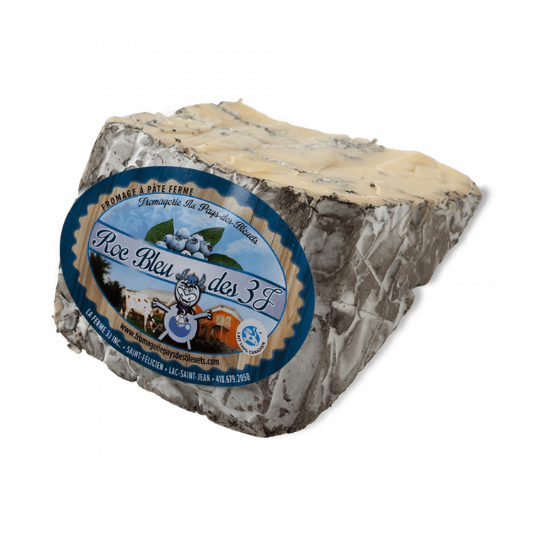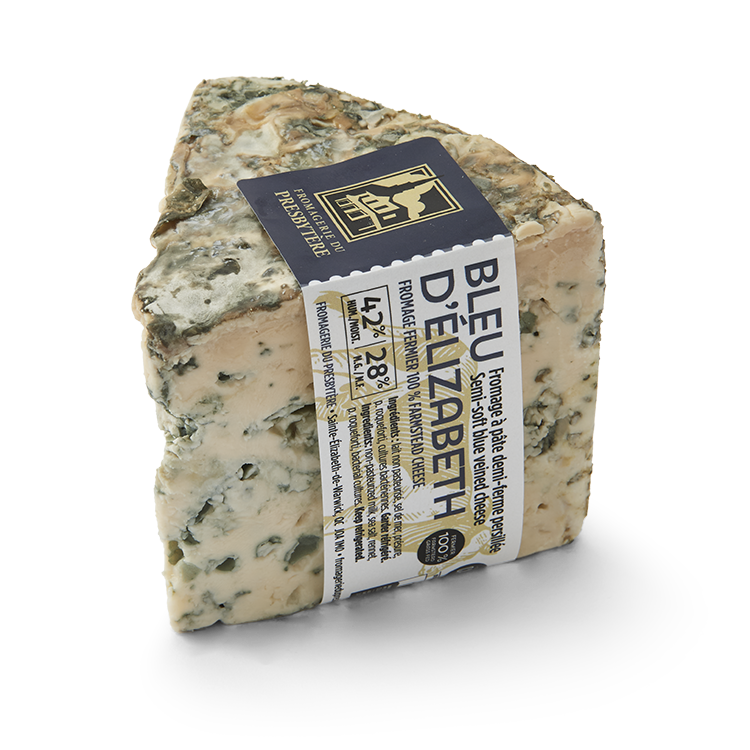 Ce fromage fermier à pâte semi-ferme persillée est fait à partir du lait thermisé provenant du troupeau de vaches holsteins et jerseys de la ferme familiale. Sa croûte naturelle parsemée de taches ocre renferme de beaux sillons bleuâtres, parfois même verdâtres, dus à la présence de penicillium Roqueforti. Au goût équilibré en sel et présentant une légère note de noisette, ce bleu fort du terroir, saura vous attirer par son caractère particulier et vous conquérir par la délicatesse qu’il offre aux caprices de votre palais.