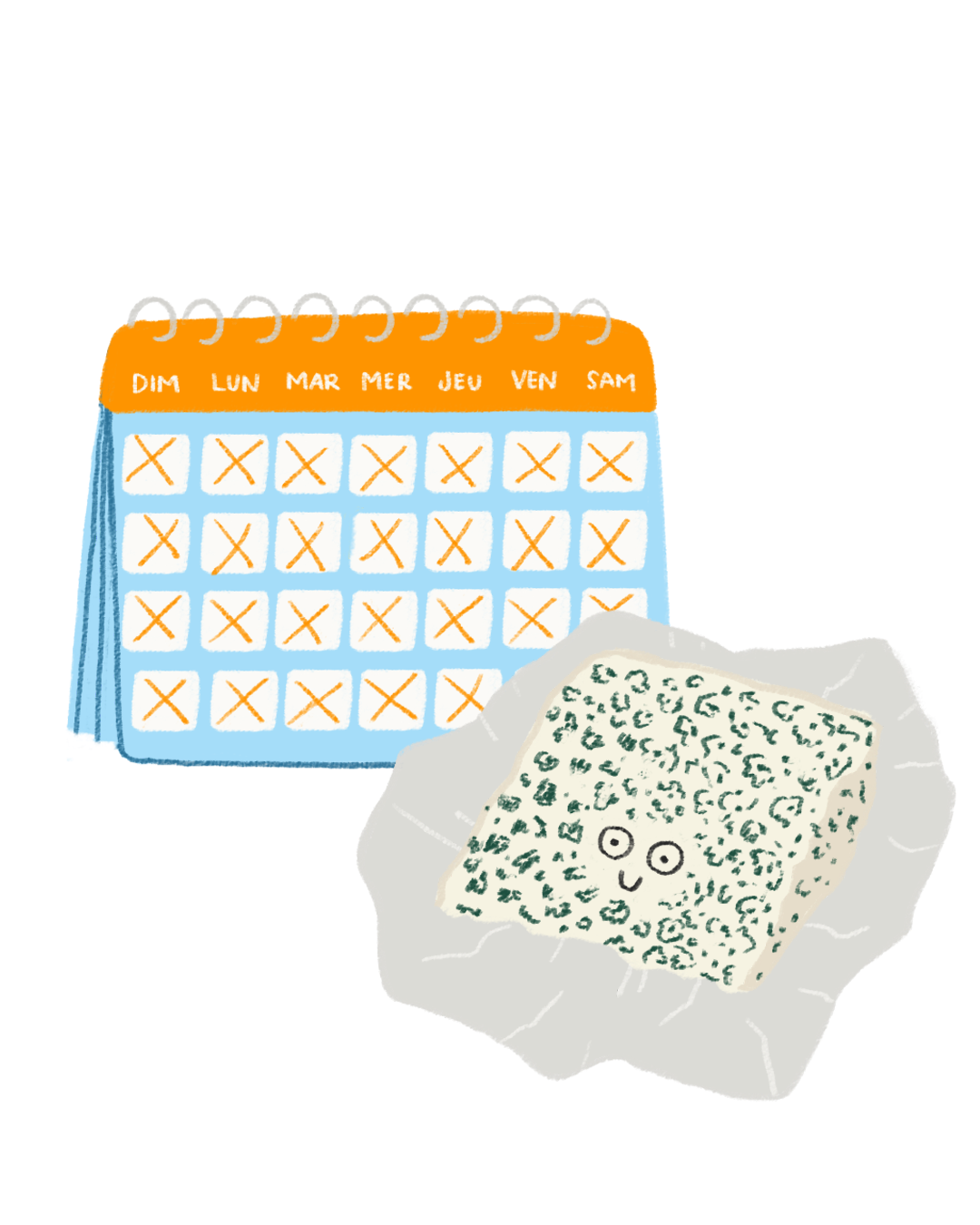 Sortir le fromage à pâte persillée du réfrigérateur et le couper immédiatement.