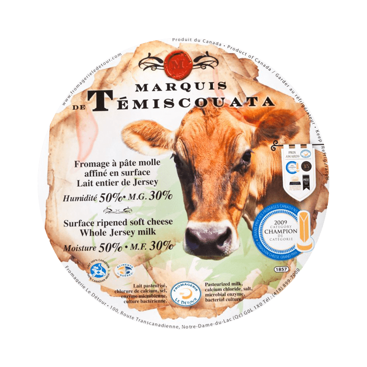 Ce fromage à pâte molle à croûte fleurie est fait du lait pasteurisé provenant uniquement de vaches de race Jersey du Terroir Témiscouata. Sa croûte est couverte d’un duvet blanc dévoilant de petites stries de couleur brun orangé. Il offre un arôme doux de champignon et de beurre. Sa pâte jaune pâle est souple et onctueuse, devenant crémeuse et coulante de la croûte vers le centre. À point, elle devient très riche et crémeuse dû au taux plus élevé de gras dans ce type de lait. Jeune, la pâte possède une douce saveur de crème, qui devient un goût de beurre en s’affinant, et la croûte apporte un goût de champignon des bois.