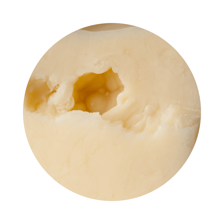 Ce fromage à pâte ferme sans croûte est fait de lait entier pasteurisé, sans ajout de substances laitières modifiées. La pâte jaune beurre de ce fromage de type suisse-emmental est parsemé d’ouvertures bien rondes, bien réparties dans la masse. Ce sont plus de 600 heures de maturation qui lui procurent une texture riche et légèrement crémeuse en bouche, au goût délicat de noisette.