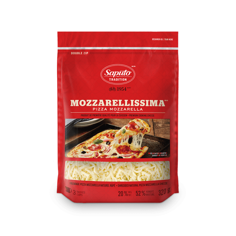 La mozzarella qui s’étire autant que son nom! Avec sa douce saveur de beurre et sa riche couleur dorée, ce fromage à pâte semi-ferme, fait de lait pasteurisé, est l’ultime fromage pour la cuisson! Fondant et s’étirant à merveille, cette mozzarella à pâte filée est idéale pour la pizza, la lasagne, ainsi que pour tous les plats gratinés préférés de votre famille.
