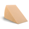 Prendre un bon gros couteau - un couteau de chef, c'est parfait - parce qu'on veut une lame large pour bien trancher la croûte et la pâte d'un fromage à pâte ferme. Un bloc carré ou une barre se coupe en tranches alors qu'une meule ronde se coupe en pointes. Plus les portions sont égales, mieux c'est !