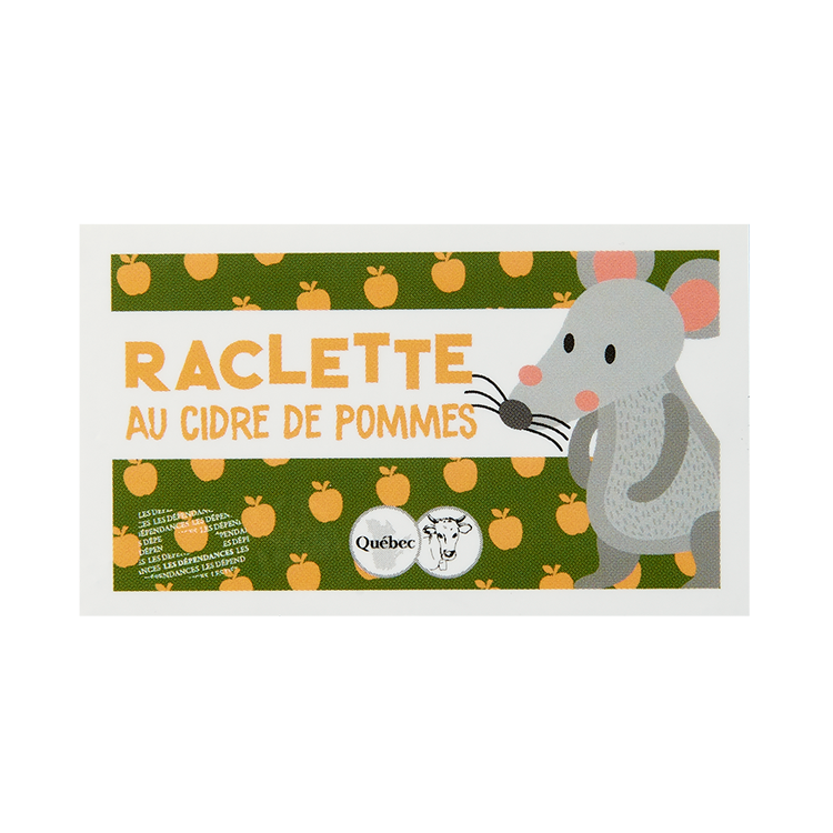 Affiné trois mois, ce fromage à pâte semi-ferme à croûte lavée est fait de lait pasteurisé. La saumure à base de cidre de pommes de la cidrerie Michel Jodoin à Rougemont avec laquelle est frotté le fromage lui confère des notes légèrement fruitées. Cette délicatesse n’entre pas en conflit avec le goût délicieux et franc du fromage. La Raclette au Cidre de Pommes fond à merveille et fera de vos soirées raclette une réussite!