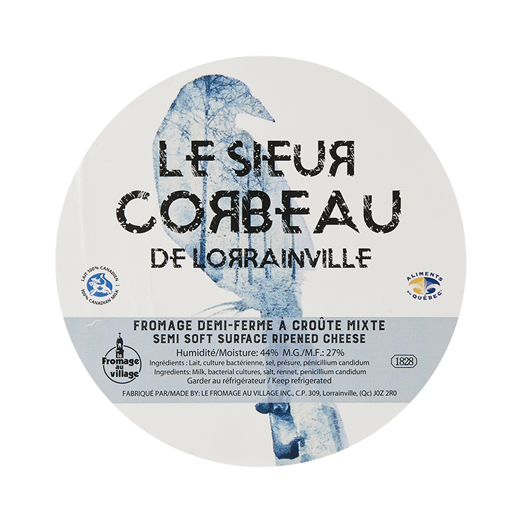 Le Sieur Corbeau est fait de lait thermisé, il nous offre une pâte semi-ferme d’une texture très onctueuse qui saura plaire à tous les amateurs. Sa croûte légèrement fleurie donne à ce fromage un cachet tout à fait particulier.