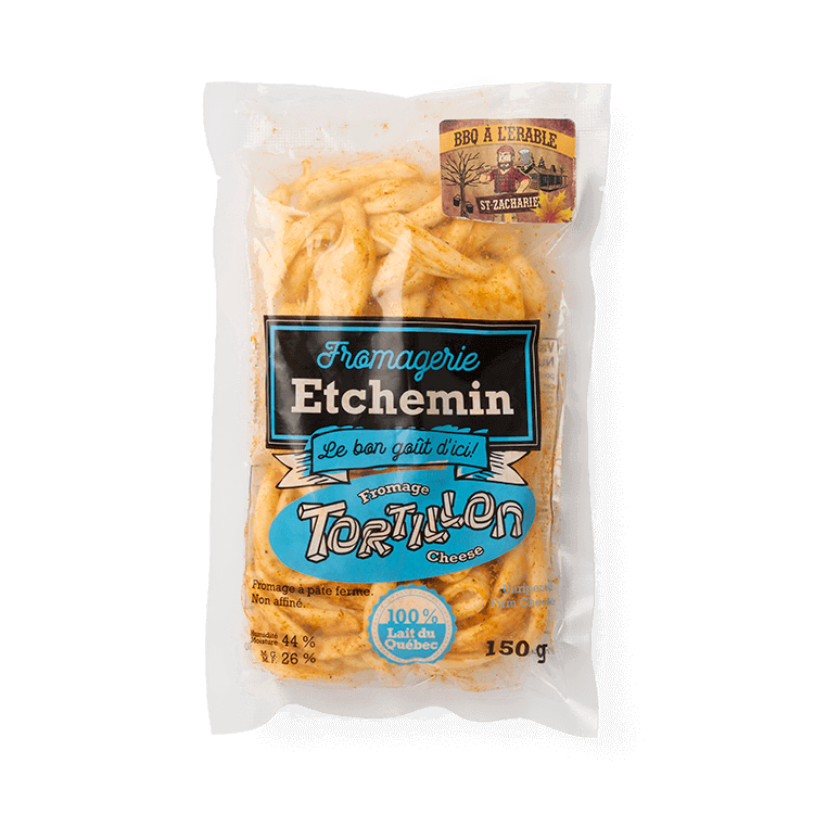Ce fromage à pâte ferme non affiné est fait de lait pasteurisé provenant uniquement de fermes locales. Filé à la main, il est assaisonné au BBQ à l'érable.