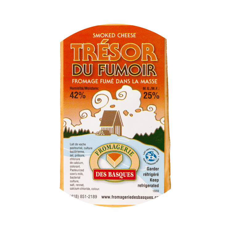 Ce fromage à pâte semi-ferme est fait de lait pasteurisé. Il est d’abord maturé en chambre chaude 15 jours, puis fumé 4 heures avec des copeaux d’érable naturel, pour être finalement maturé en chambre froide de 2 à 3 mois. Ce fromage fumé dans la masse offre un arôme doux et une texture qui fond en bouche. Une meule entière pèse entre 3 et 4 kg, mais il est vendu en pointe dans les magasins.